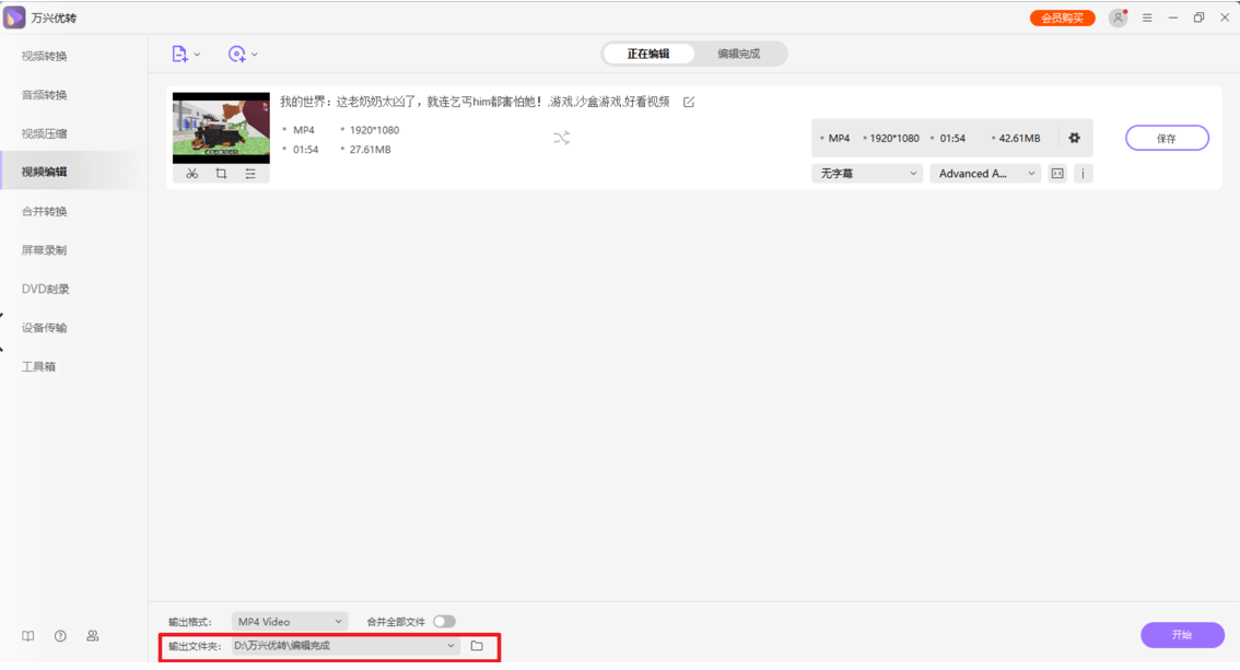 单击开始按钮即可运行。当保存按钮下方出现绿色的成功字样时,说明已经添加成功了。可以在输出文件夹找到输出的视频文件。