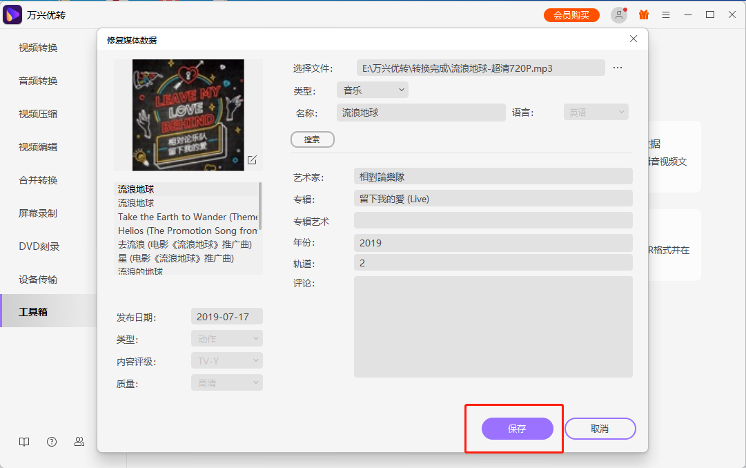 待搜索自动补充完整元数据信息后,可对照信息进行修改并完成保存。