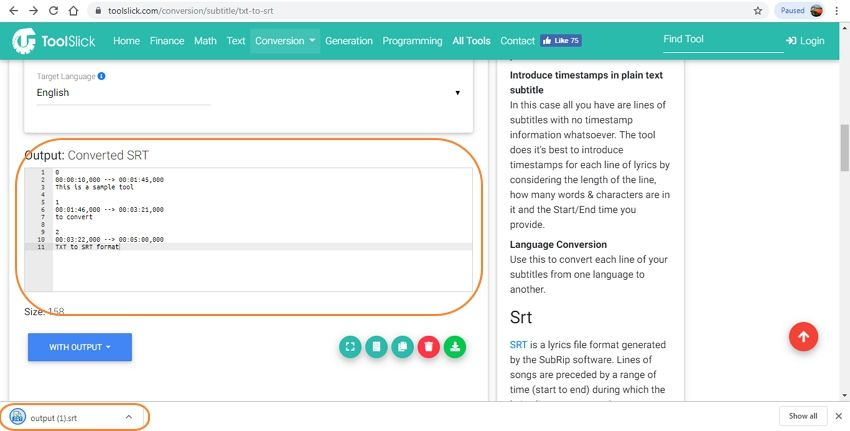 过一会儿,SRT文件的内容也会出现在输出框中。