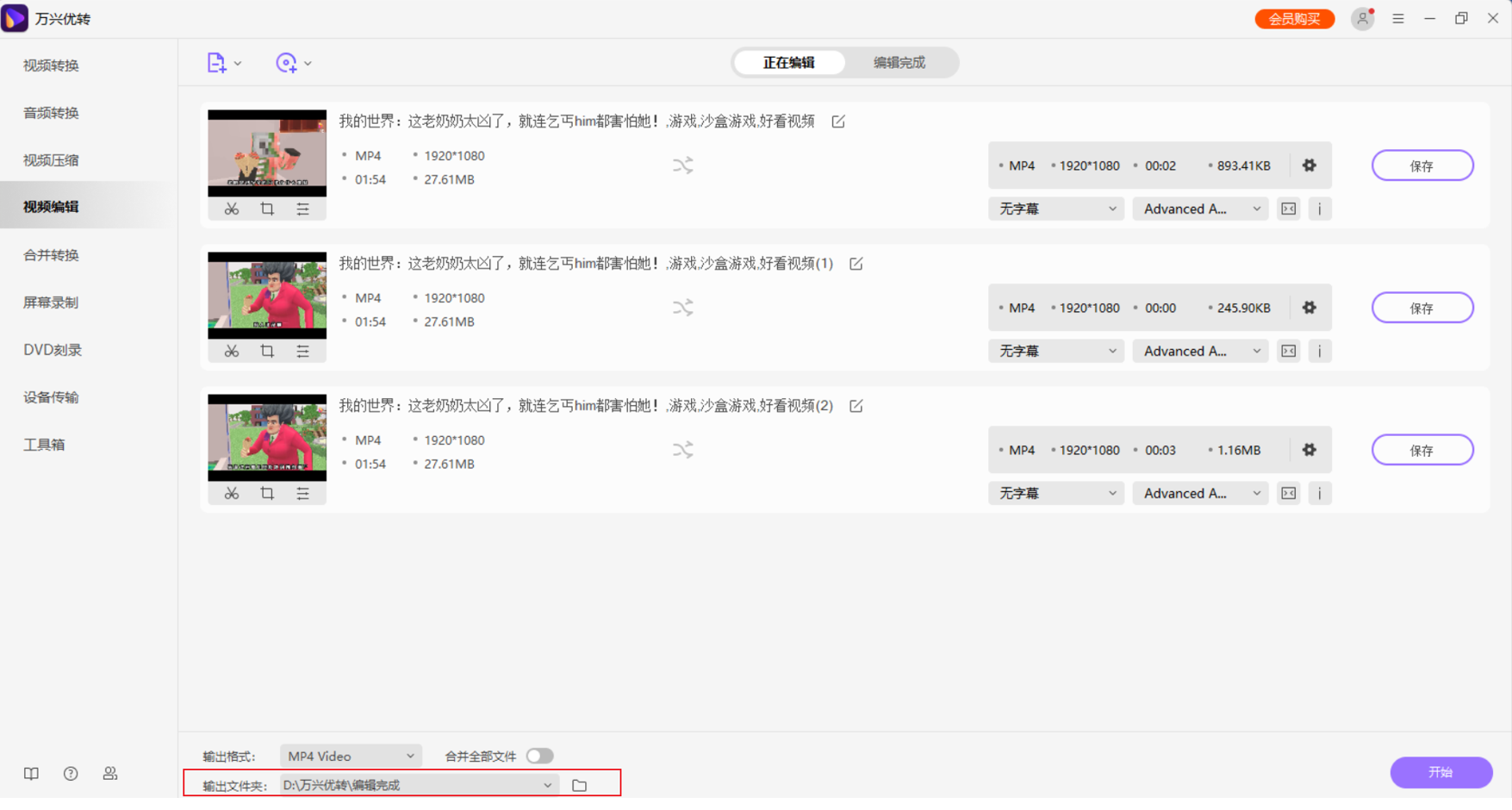 点击开始按钮就可以进行剪切了,在输出文件夹可以找到刚才剪切的视频片段。
