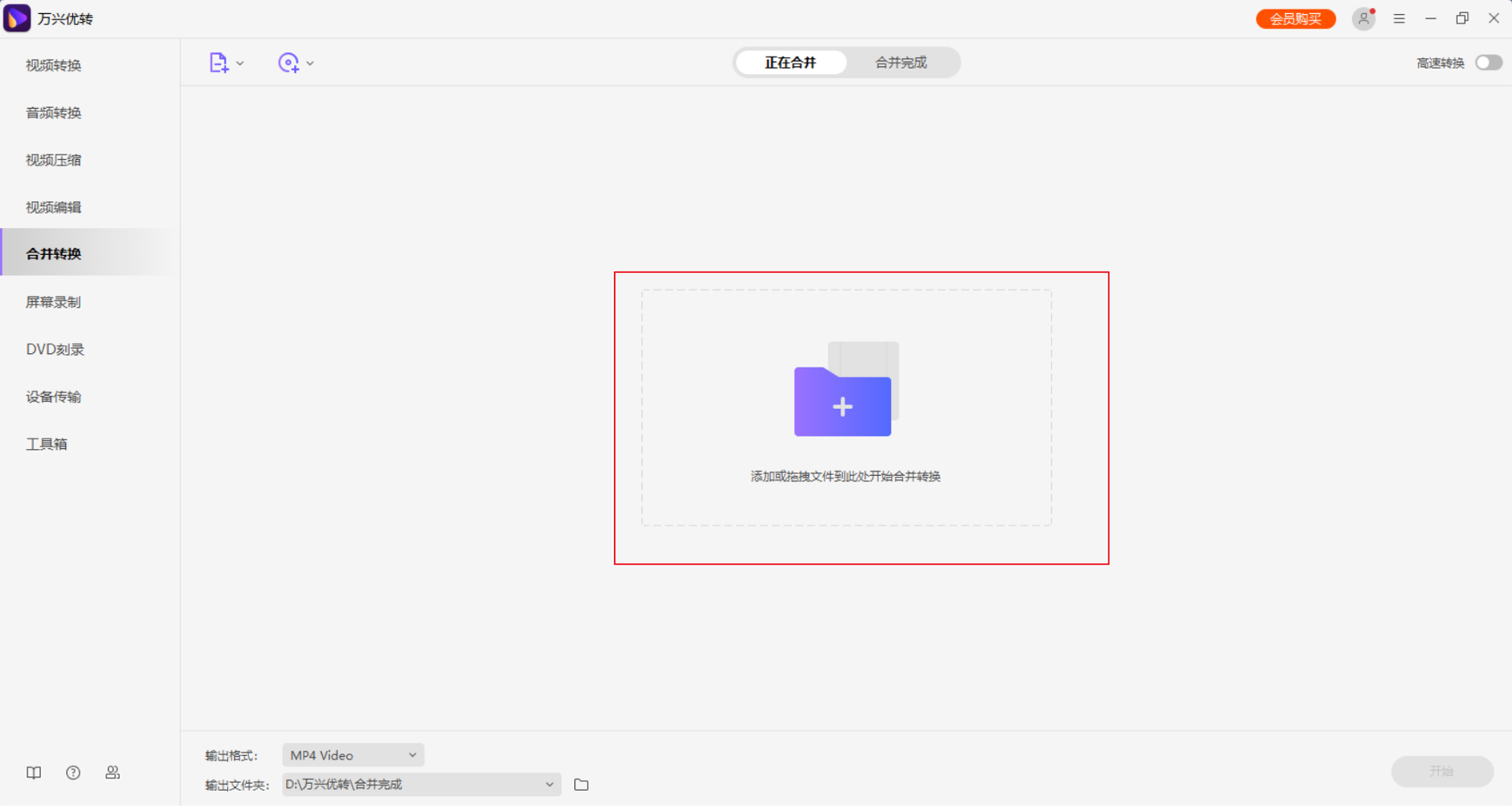 在日韩免费视频观看优转左侧找到合并转换的模块,选中中间的文件夹图标找到刚才已经剪切好的视频片段,或者直接将已经剪切好的视频片段拖拽到这个文件夹图标上。