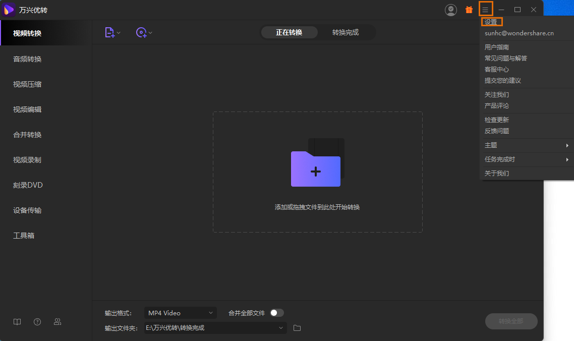 单击产品主界面右上角的下拉按钮,选择“设置”选项,然后切换到位置选项卡更改输出文件得位置。