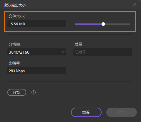 注意:输出文件的大小只是一个估计。