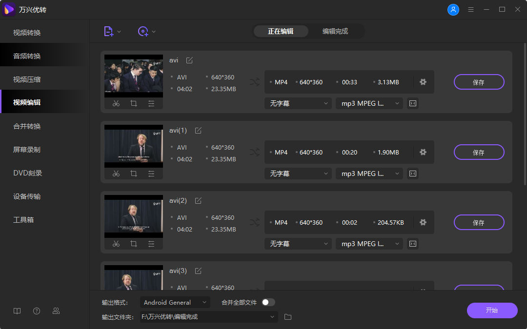 转换过程结束后,您将在转换完成选项卡下看到已编辑的视频。