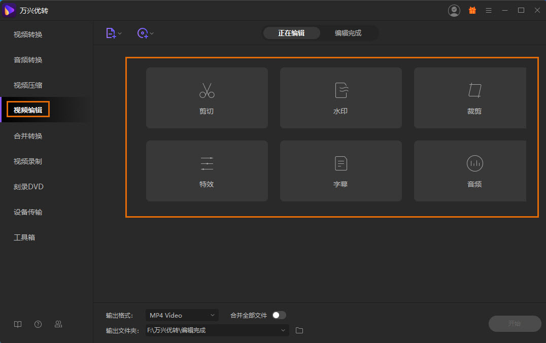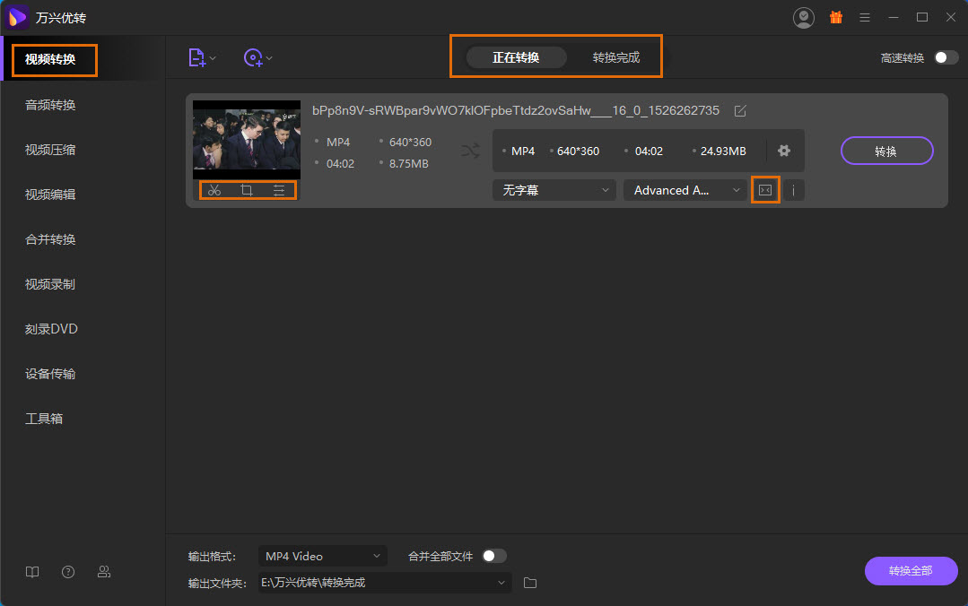 在视频转换板块,您可以转换视频之间的格式,例如将多种格式视频转换为MP4格式。同时,您可以在转换之前编辑您的视频,如添加特效,裁剪视频等。并将转换中的视频和完成后的视频分成不同的标签,方便管理。