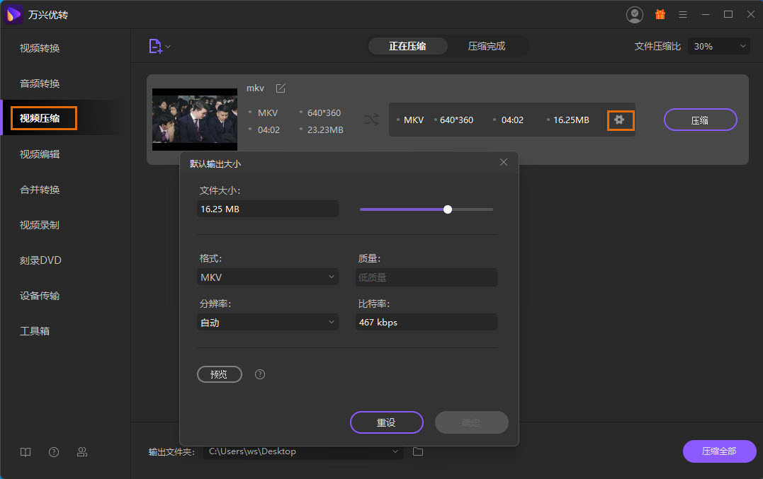 当存储空间不足时,视频压缩便成了关键。使用日韩免费视频观看优转的视频压缩功能,可以将本地文件添加到界面以调整大小。您既可以选择以最佳配置自动压缩文件,也可以选择手动修改文件参数,如质量、分辨率和比特率来调整文件大小。如果需要,你甚至可以改变输出格式。