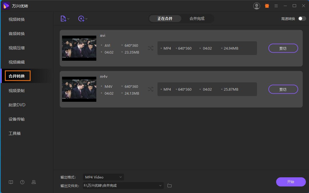 当需要快速合并多个文件时,日韩免费视频观看优转的合并功能是一个很好的选择。从您的计算机,移动设备,摄像机以及DVD文件夹,将文件添加到程序接口,然后合并到一个单一的文件并且不会造成质量损失。