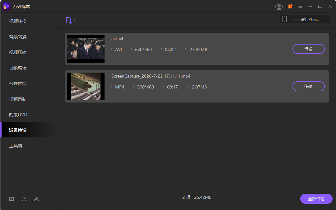 步骤1进入设备传输功能板块
