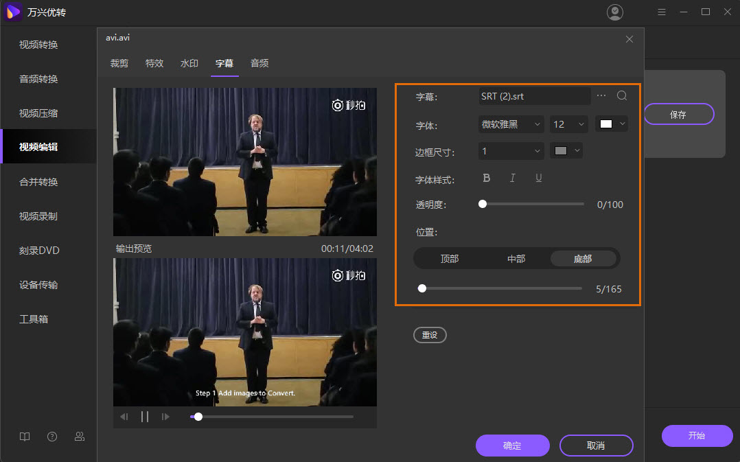 - 编辑字幕的各种相关设置,如字体,颜色和位置。